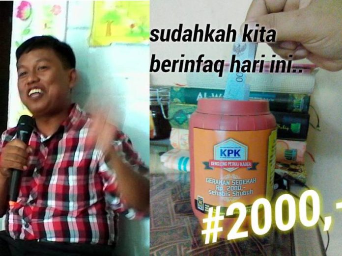 “Infaqnya kami beri nama I-SERBU, Infaq Sehari Rp2000. Setiap kader akan berinfaq sehari minimal Rp2000, ketika awal hari atau waktu Subuh dan disalurkan melaluli KPK,” tambahnya.