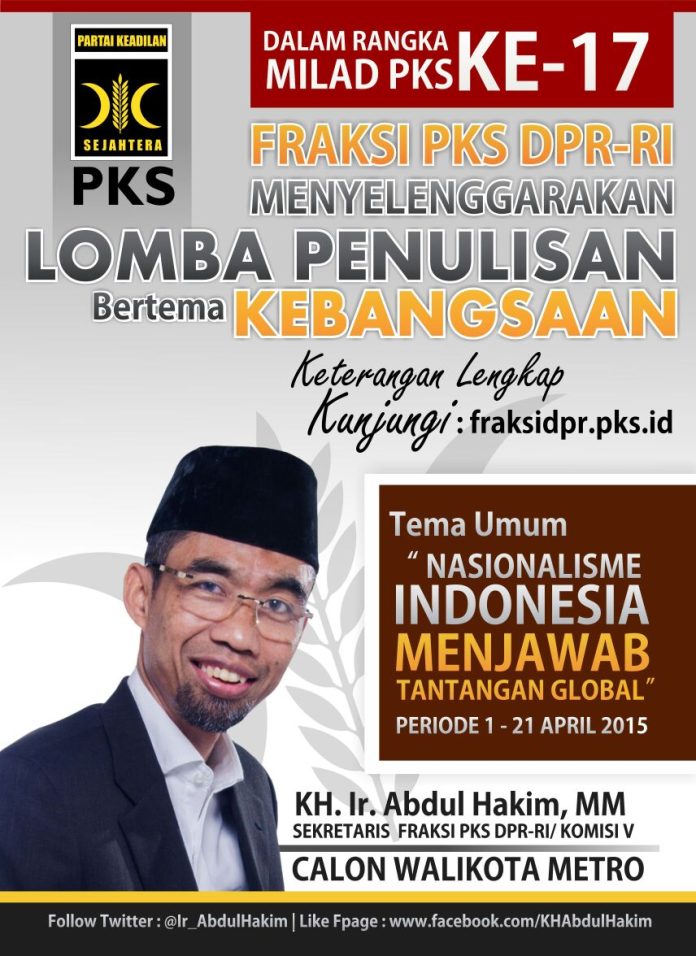 Diketahui, Lomba Penulisan Fraksi PKS DPR RI diselenggarakan dalam rangka memperingati Milad (ulang tahun) Partai Keadilan Sejahtera (PKS) yang ke-17.