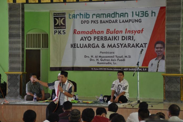 “Ramadan bulan mengingatkan simpati kita kepada kaum duafa, terutama bangsa ini. Ramadan waktu tepat untuk melihat segala kebutuhan kita dalam memulihkan kondisi, baik diri sendiri maupun masyarakat. Jangan sampai titik duafa terabaikan yang justru menjadi sumber kelemahan bagi diri sendiri dan masyarakat,” kata Gufron saat mengisi Tarhib Ramadan yang diikuti seribuan kader partai se-Bandar Lampung Minggu 14/6/2015 di Aula SLB Kemiling.