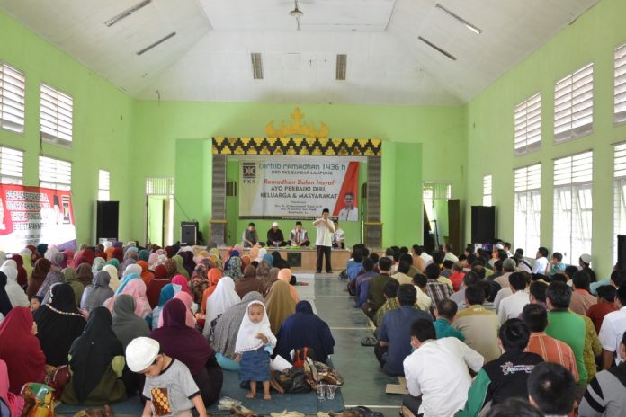 Seribuan kader PKS antusias mendengar materi sambut Ramadan yang diberikan bergantian oleh Ketua DPW PKS Lampung Gufron Azis Fuadi dan anggota DPR Almuzzammil Yusuf yang juga bakal calon bupati Pesawaran.