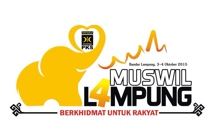 BANDAR LAMPUNG (30/9) – Logo Musyawarah Wilayah PKS Lampung yang menghadirkan pengurus DPW (Dewan Pengurus Wilayah), MPW (Majelis Pertimbangan Wilayah) dan DSW (Dewan Syariah Wilayah) PKS Lampung, serta perwakilan DPD (Dewan Pengurus Daerah) PKS se Lampung dan diselenggarakan di Bandar Lampung dari tanggal 3 – 4 Oktober 2015, Sabtu-Ahad mendatang bakal dimeriahkan oleh gajah. Gajah yang dimaksud adalah Ello yang menjadi logo Muswil PKS Lampung ke – 4 ini.