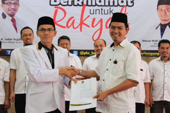 Ket Foto : Penyerahan-SK-Kepengurusan-DPD-PKS-Bandar-Lampung-Dari-Sekum-DPW-Lampung-Ade-Utami-Ibnu-kepada-Ketum-DPD-PKS-Bandar-Lampung-Aep-Saripudin
