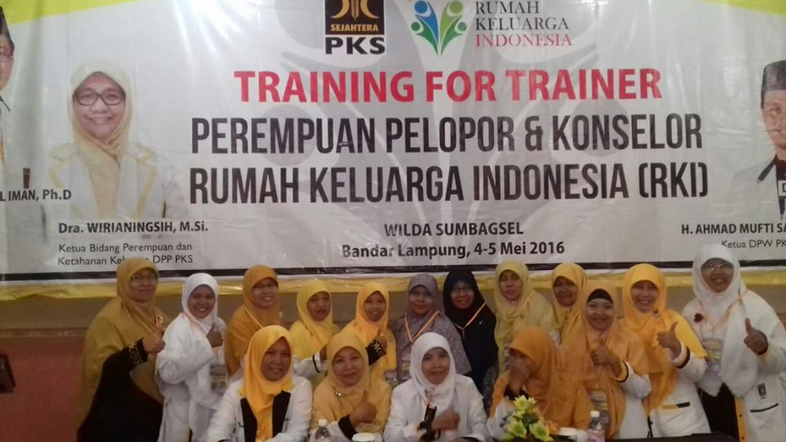 Hal ini disampaikan Ketua Bidang Perempuan Ketahanan Keluarga (BPKK) Dewan Pengurus Pusat (DPP) PKS, Wirianingsih dalam arahannya pada Training For Trainer (TFT) Perempuan Pelopor dan Konselor Rumah Keluarga Indonesia (RKI) Rabu, 4 Mei 2016 di Hotel Nusantara Lampung.
